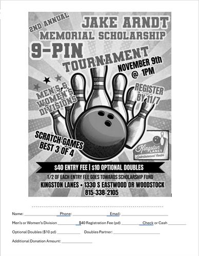 Join us to support the Jake Arndt Memorial Scholarship with our 2nd Annual 9 Pin Tournament!!