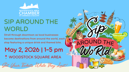 The Woodstock Area Chamber of Commerce is pleased to present Sip Around the World in Woodstock, a global tasting experience through the businesses of the historic Woodstock Square and surrounding downtown.