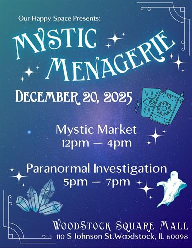 Shop among local readers, mystics and spooky small businesses! Wander the mall to meet different kinds of intuitive readers, tarot readers, and mystics. This event will feature spooky goods, crystals, and handcrafted witchy tools amongst many curios and oddities. This will be an extra special market to celebrate the Winter Solstice and find that perfect holiday gift!??
